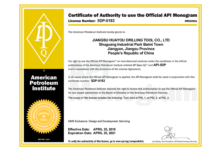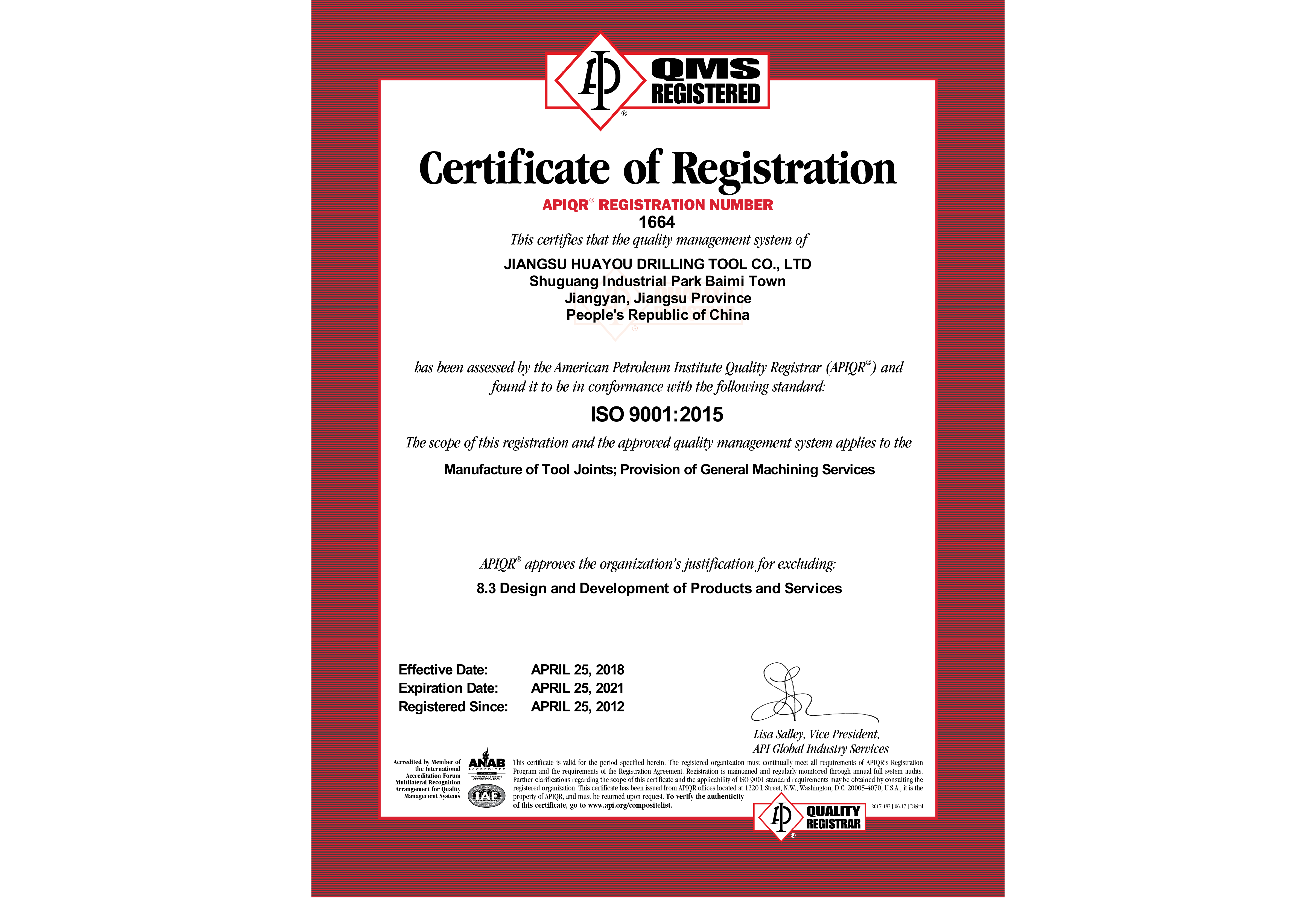 江蘇華油鉆具有限公司地處中國江蘇省姜堰市曙光工業(yè)園區,四周交通便捷,經(jīng)濟發(fā)達。本公司始建于2006年,專(zhuān)業(yè)生產(chǎn)各種規格的石油鉆具產(chǎn)品。多年來(lái),江蘇華油鉆具有限公司始終堅持“依靠科技進(jìn)步,持續改進(jìn);追求品質(zhì)卓越,鑄造品牌”的經(jīng)營(yíng)理念。我公司注冊資金1300萬(wàn)元,總投資2000萬(wàn)元,占地面積30000平方米,建筑面積12000平方米,現有員工100多人,其中高級工程師5人,各類(lèi)工程技術(shù)人員20多人,主要生產(chǎn)常規鉆桿接頭、雙臺肩鉆桿接頭、轉換接頭、加重鉆桿接頭等,年產(chǎn)量可達8萬(wàn)對以上。產(chǎn)品質(zhì)量通過(guò)了ISO9001:2008國際質(zhì)量體系認證和API會(huì )標認證。公司擁有接頭鍛造生產(chǎn)流水線(xiàn)、接頭熱處理生產(chǎn)流水線(xiàn)。